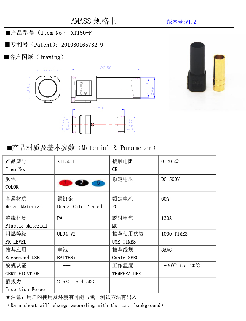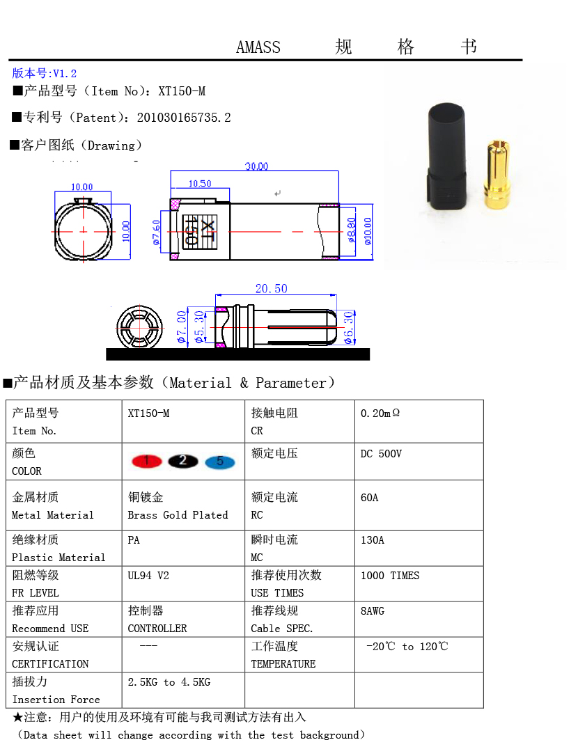 品牌:Amass XT150-M 插頭連接線